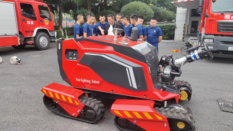 在演示活動上,我公司自主研發(fā)的全地形消防滅火機器人,通過全程智能化遙控操作,可以更好的完成現(xiàn)場救災(zāi)滅火任務(wù)。四履帶獨立驅(qū)動,可以全地形移動,360度原地調(diào)頭,同時還可以實現(xiàn)高空出水等諸多高難度動作,具有靈活、高效、安全的特點。