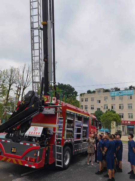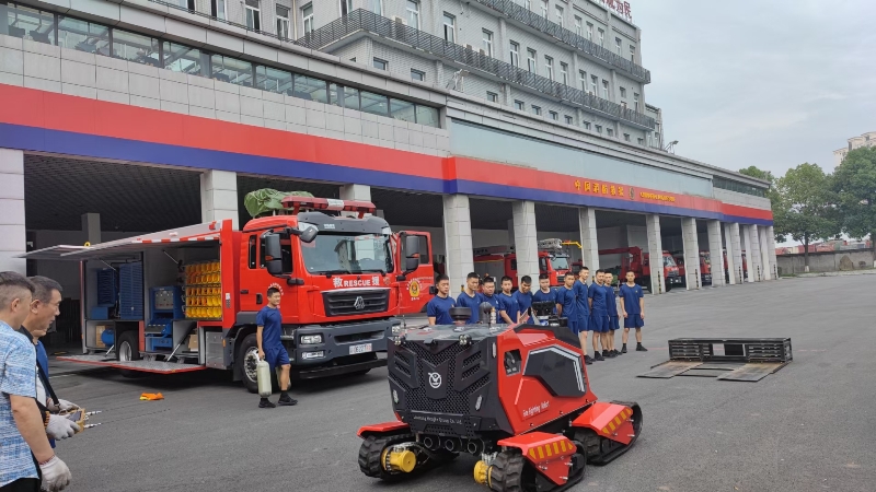 2022年6月末公司領(lǐng)導(dǎo)及銷售經(jīng)理帶著公司兩款主打產(chǎn)品——舉升搶險主戰(zhàn)消防車和全地形消防滅火機器人在重慶總隊、貴陽總隊及各支隊進行巡展演示。