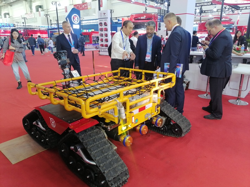 除了上述介紹的消防機(jī)器人以外,我公司還攜帶了消防滅火機(jī)器人新產(chǎn)品—“戰(zhàn)狼”和“利劍”,在展會上也受到關(guān)注和熱評。三、未來發(fā)展本次展會的完美亮相,全面展示了我公司對于技術(shù)創(chuàng)新的不懈追求,對新能源、數(shù)智化的持續(xù)深耕,也象征著我公司在應(yīng)急領(lǐng)域的創(chuàng)新技術(shù)、產(chǎn)品研發(fā)邁入了一個(gè)新的階段。在構(gòu)建“大應(yīng)急、全災(zāi)種”的防災(zāi)減災(zāi)救災(zāi)的新局勢、新任務(wù)下,我公司將繼續(xù)以創(chuàng)新驅(qū)動發(fā)展,聚焦實(shí)戰(zhàn)救援,磨練過硬技術(shù),助力消防部門為社會安穩(wěn)和經(jīng)濟(jì)發(fā)展提供良好的環(huán)境,為中國產(chǎn)品推向世界貢獻(xiàn)智慧力量!